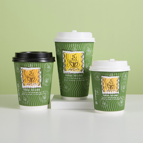 ถ้วยกระดาษพร้อมฝาปิดปั๊มลายริ้วสองชั้นขนาด6ออนซ์8ออนซ์9ออนซ์10ออนซ์14ออนซ์16ออนซ์รีไซเคิลโลโก้แบบใช้แล้วทิ้ง