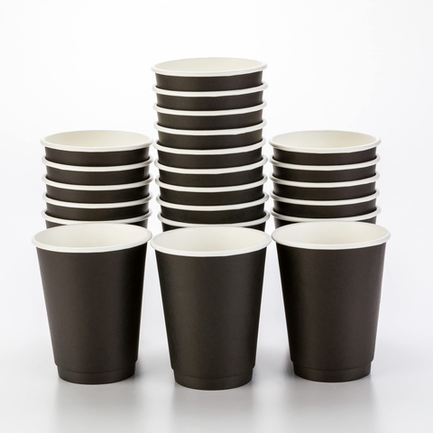 ร้อนบรรจุย่อยสลายได้สีดําเดี่ยวทิ้งคู่ผนังกระดาษถ้วยกาแฟพร้อมฝาปิดแขนกวนแท่งสําหรับกาแฟร้อน